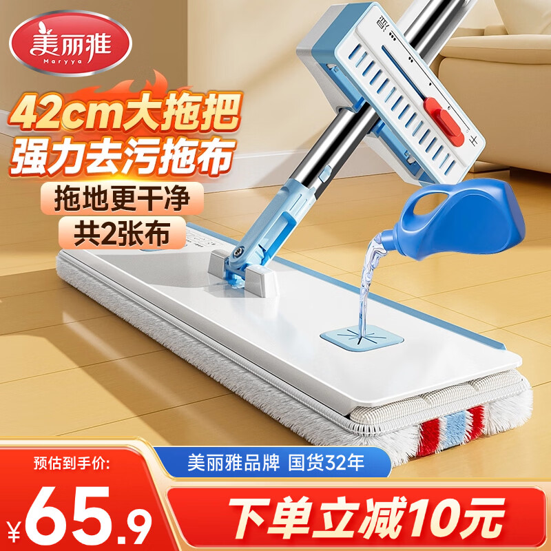 领 领 领 美丽雅免手洗平板拖把42cm 凑后到手9.1亓 共2拖布