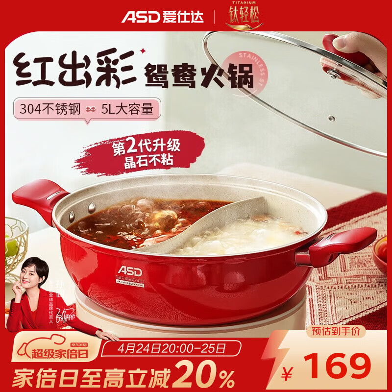 先领5折补帖卷 爱仕达 304不锈钢鸳鸯锅 仅.需44.5亓,之前最