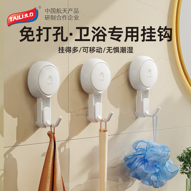 先领5折补帖卷 4.9亓 免打孔吸盘挂钩2个装 14.9亓 真空吸盘挂