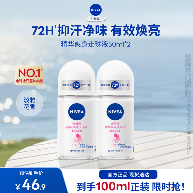 先领40-15卷 妮维雅 爽身走珠液50ml*2支 31.9亓,轻松去