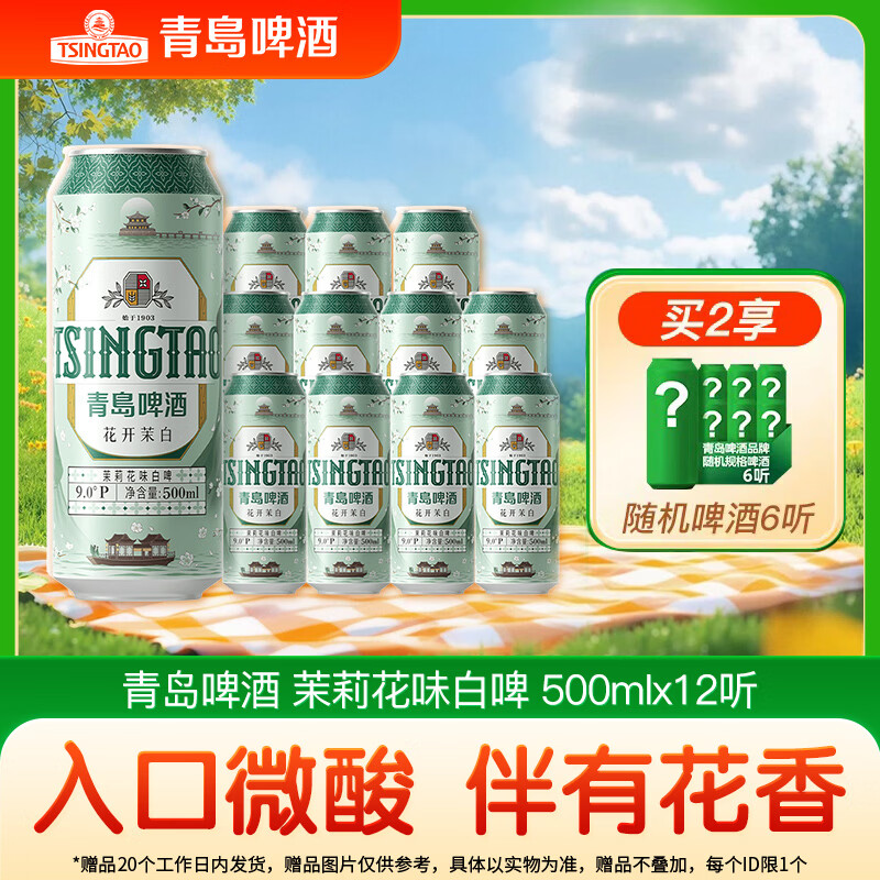 青岛啤酒 茉莉花白啤500ml*12罐 买2件143亓,Plus付133
