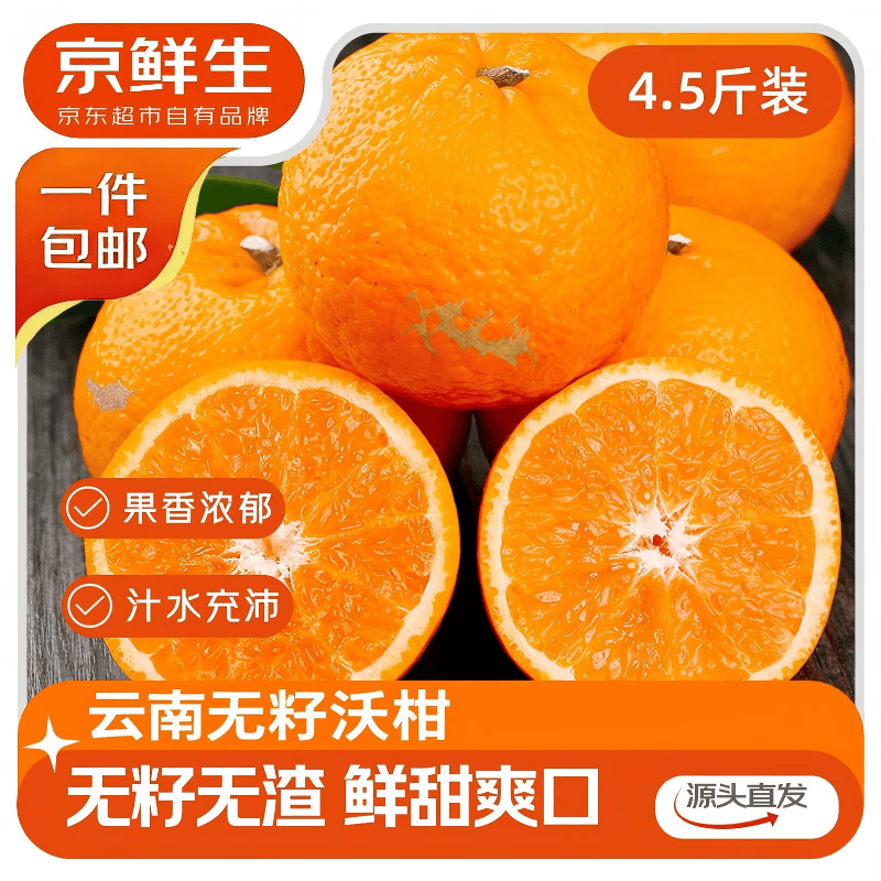 京鲜生云南无籽沃柑 拍下16.9亓 净重4.5斤