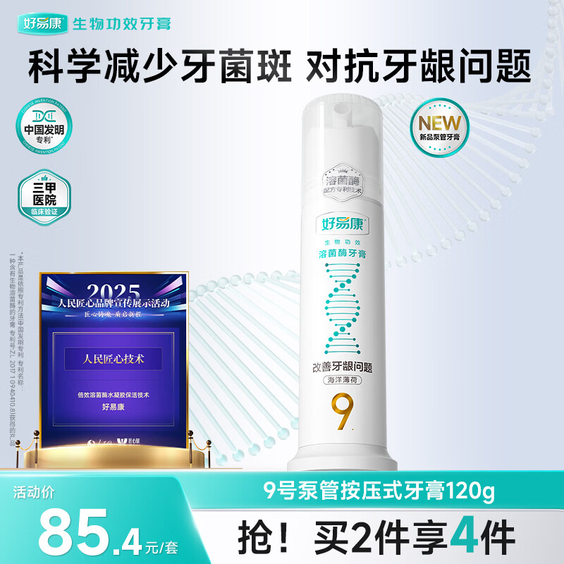 【自营】9号护龈泵式牙膏120g 59.9亓,赠京东家政服务2h *家政