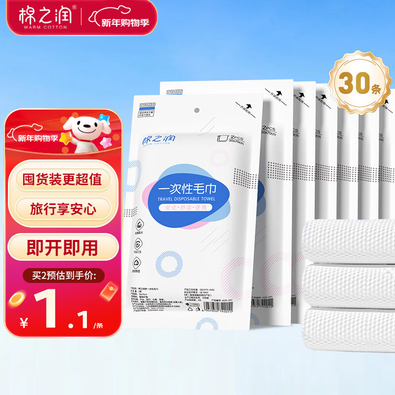 【自营】棉之润 一次性毛巾30片 31.9 U;Plus新客27.9包邮