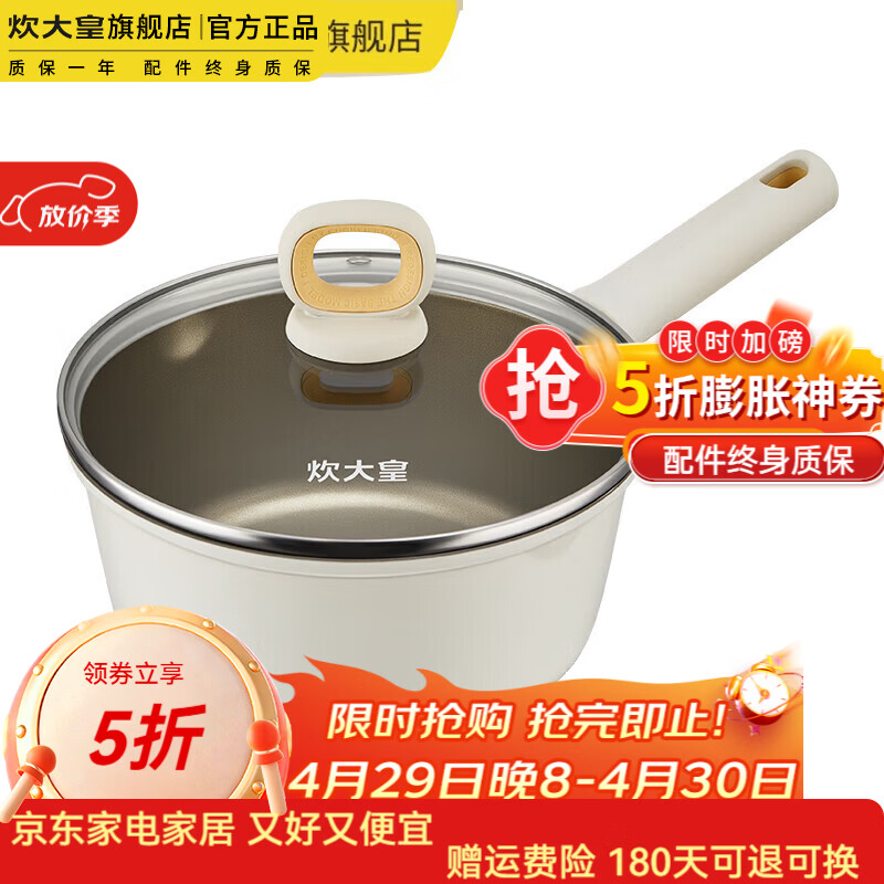领5折券 炊大皇奶锅钛盾不粘锅 79.5亓 炊大皇炒锅钛盾不粘锅