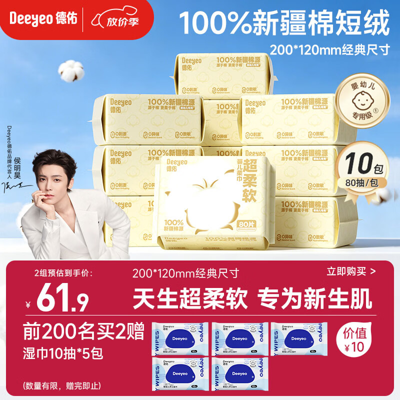 德佑超柔软100%新疆棉源柔巾80抽10包